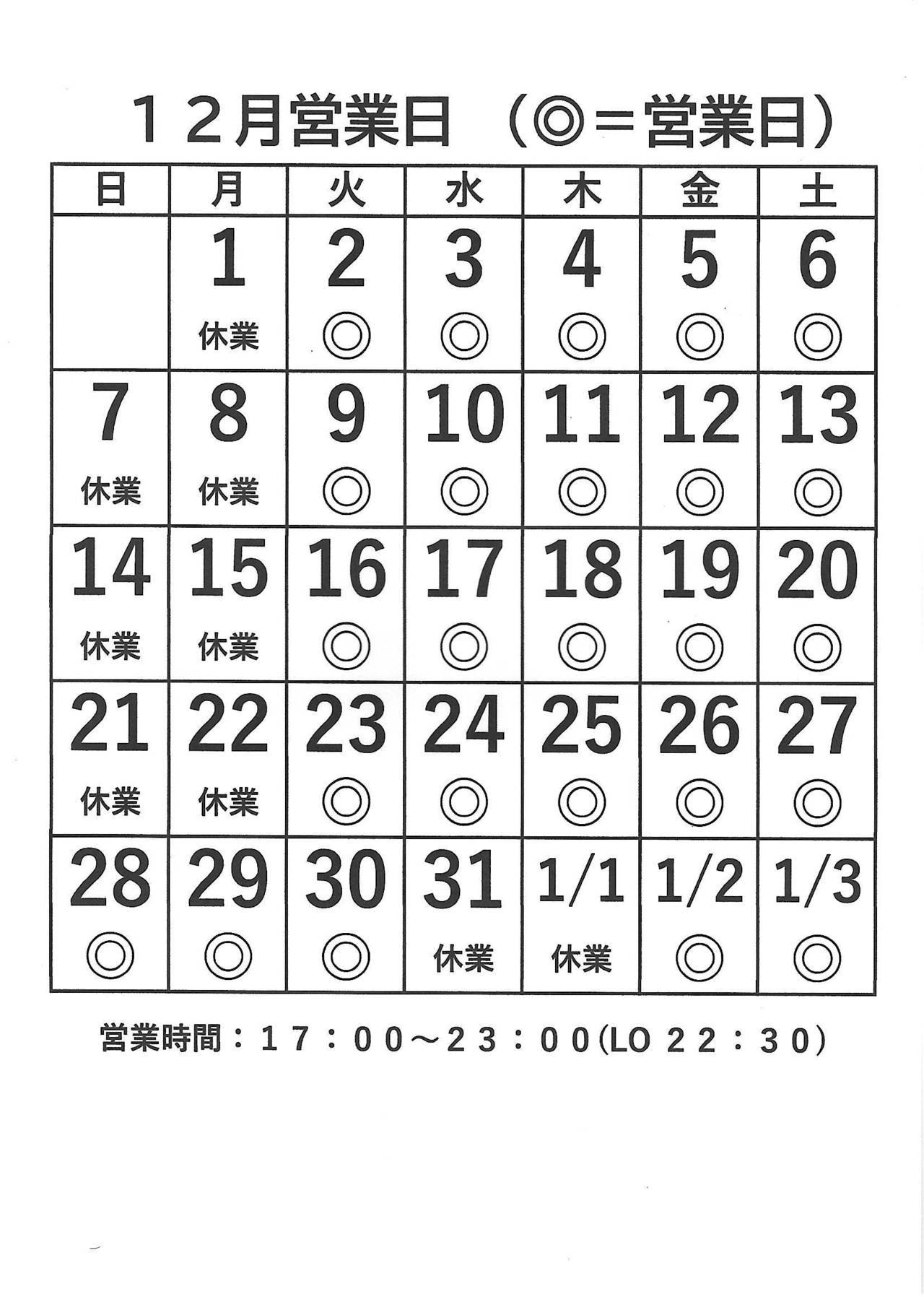 12月からは、毎週火曜日の営業を再開させて頂きます。